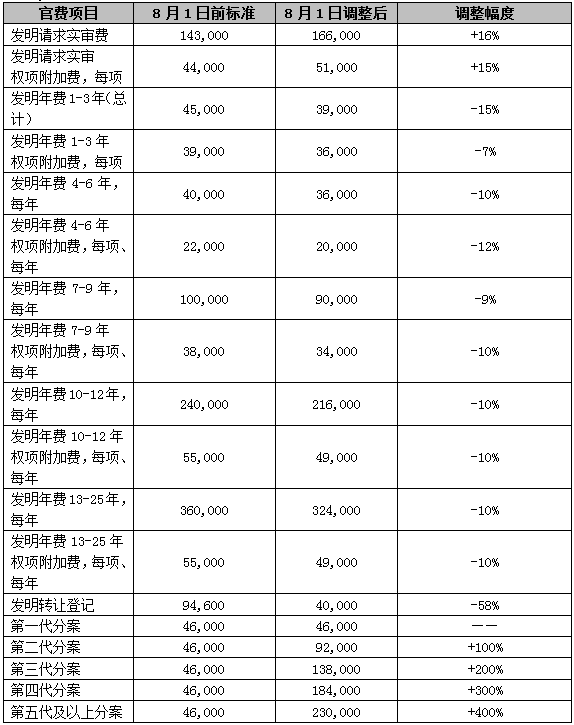 本次調(diào)整的專利官費(fèi)項(xiàng)目主要內(nèi)容如下: