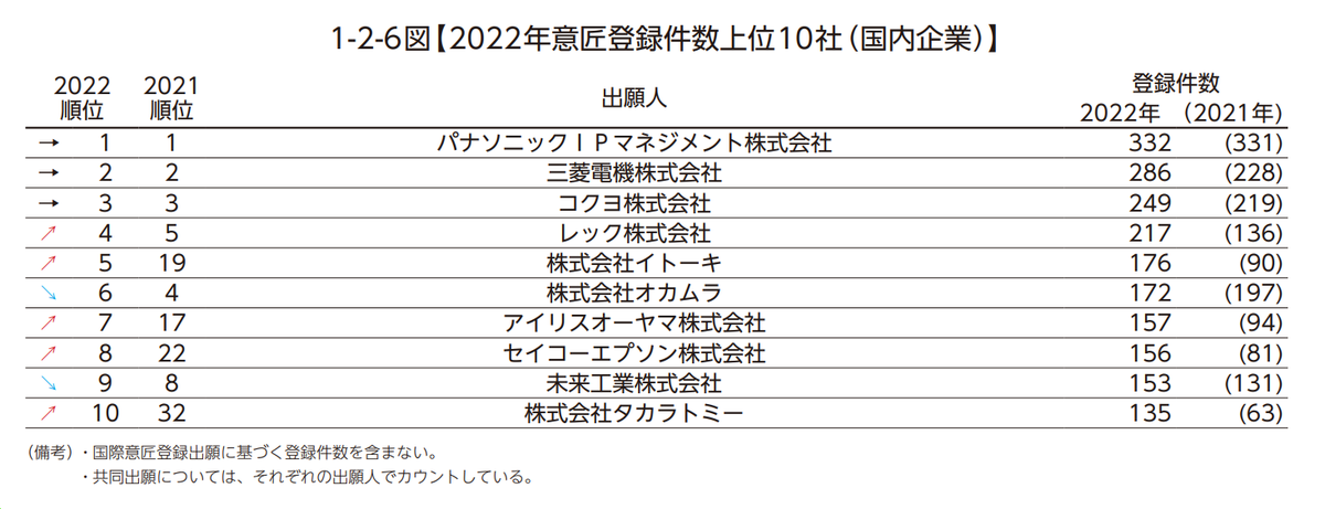 前10大日本國內(nèi)企業(yè)外觀設(shè)計(jì)注冊量: