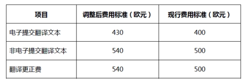 補(bǔ)交譯文費(fèi):140 歐元(當(dāng)前為125 歐元)