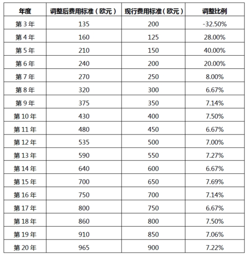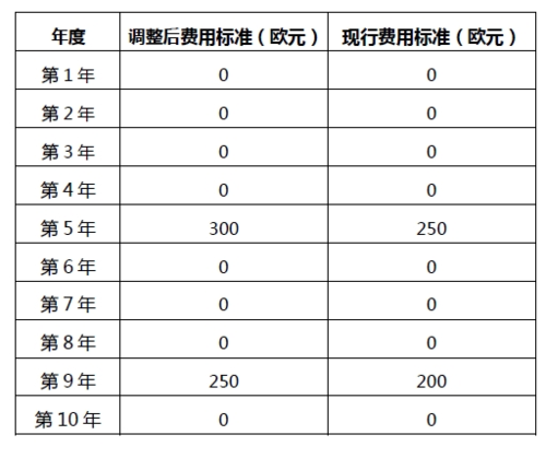 補(bǔ)充保護(hù)證書申請費(fèi):550 歐元(當(dāng)前為500 歐元)