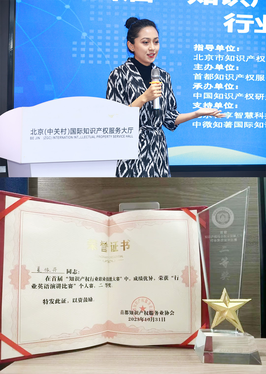 近日,在北京市知識(shí)產(chǎn)權(quán)局、中關(guān)村科學(xué)城管委會(huì)的指導(dǎo)下,由首都知識(shí)產(chǎn)權(quán)服務(wù)業(yè)協(xié)會(huì)主辦,中國(guó)知識(shí)產(chǎn)權(quán)研究會(huì)專利專業(yè)委員會(huì)、北京(中關(guān)村)國(guó)際知識(shí)產(chǎn)權(quán)服務(wù)大廳承辦的首屆“知識(shí)產(chǎn)權(quán)行業(yè)職業(yè)技能大賽”(以下簡(jiǎn)稱“技能大賽”)總決賽成功舉辦。集佳優(yōu)秀青年代理人夏依丹榮獲本屆技能大賽“行業(yè)英語演講比賽”二等獎(jiǎng)。