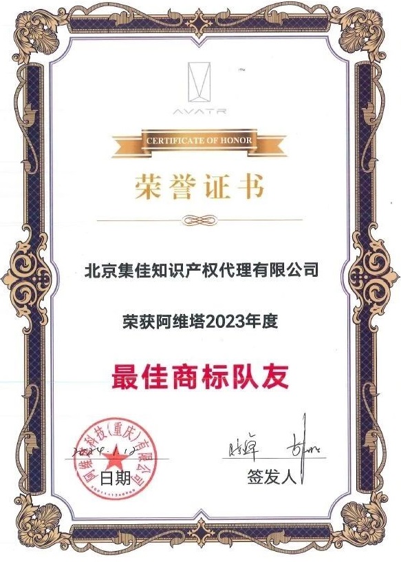 近日,集佳優(yōu)質(zhì)服務(wù)再次喜獲客戶點(diǎn)贊——阿維塔科技(重慶)有限公司(以下簡稱“阿維塔”)授予集佳2023年度“最佳商標(biāo)隊(duì)友”榮譽(yù)稱號。