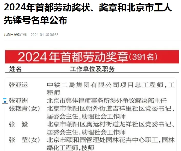 在五一勞動(dòng)節(jié)來(lái)臨之際,北京日?qǐng)?bào)公布了“2024年首都勞動(dòng)獎(jiǎng)狀、獎(jiǎng)?wù)潞捅本┦泄と讼蠕h號(hào)”名單,該評(píng)選由北京市總工會(huì)、北京市人力資源和社會(huì)保障局組織,旨在弘揚(yáng)勞模精神、勞動(dòng)精神和工匠精神。集佳合伙人張亞洲律師榮獲2024年首都勞動(dòng)獎(jiǎng)?wù)?/strong>,是首都司法行政系統(tǒng)獲此榮譽(yù)的4名先進(jìn)個(gè)人之一!
