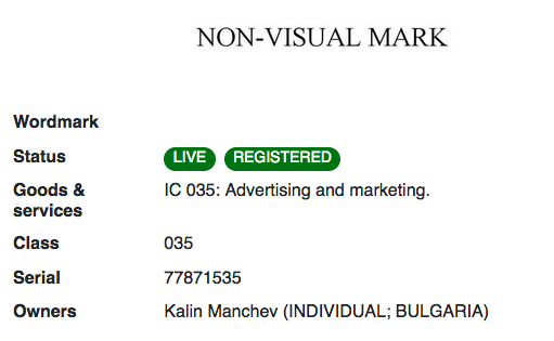 2015年歐盟將圖文形式呈現(xiàn)的標(biāo)準(zhǔn)放寬到以一般技術(shù)呈現(xiàn)。由于氣味很難以圖形或文字描述,且必須能夠無歧義地被感知,這是一項(xiàng)挑戰(zhàn)。歐盟還沒有氣味商標(biāo)被核準(zhǔn)。