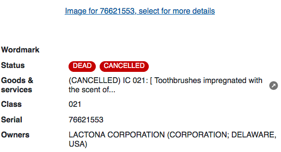 申請(qǐng)書中將這些產(chǎn)品列為“浸透草莓香味的牙刷”,該商標(biāo)于2007年正式獲得注冊(cè)。