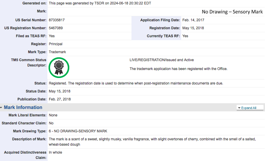 美國(guó)是至今氣味商標(biāo)獲得注冊(cè)最多的國(guó)家。在審查過程中,美國(guó)《商標(biāo)檢驗(yàn)程序手冊(cè)》總結(jié)了氣味商標(biāo)的審查標(biāo)準(zhǔn):
