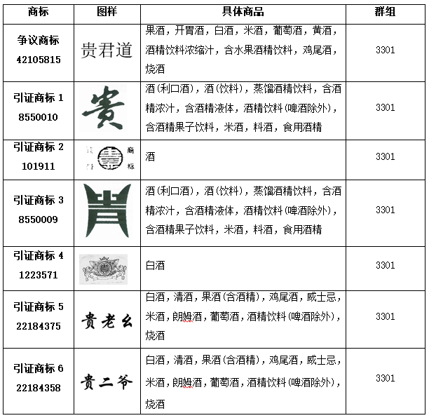 在引證商標已經具有一定知名度的情況下,作為同行業(yè)經營者的上海貴酒股份有限公司卻申請了上述“貴君道”商標(以下簡稱“訴爭商標”)。貴酒公司依據(jù)《商標法》第三十條,對“貴君道”商標提出了無效宣告。國知局審查認為:訴爭商標與引證商標構成類似商品上的近似商標,訴爭商標違反《商標法》第三十條的規(guī)定,應該予以無效宣告。