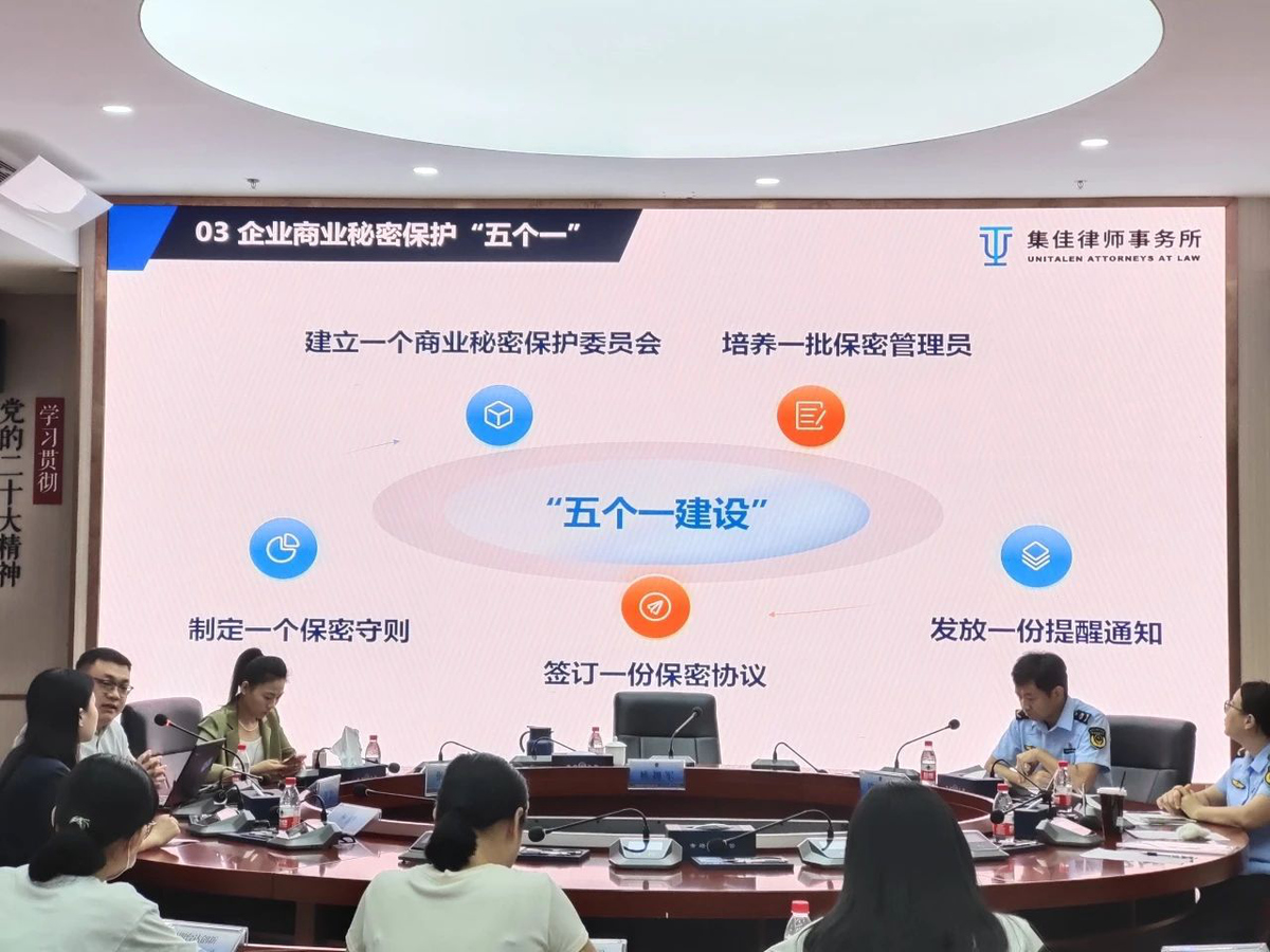 在系列培訓活動上,吳恙律師介紹了商業(yè)秘密的基本概念及構成要件,結合與專利制度的橫向對比分析商業(yè)秘密制度的要點及特征。進而引入商業(yè)秘密保護“五個一”建設的政策宣貫,包括建立一個商業(yè)秘密保護委員會、培養(yǎng)一批保密管理員、制定一個保密守則、簽訂一份保密協(xié)議、發(fā)放一份提醒通知。同時,吳恙律師進一步介紹了圍繞“五個一”政策的商業(yè)秘密保護體系建設方式,從企業(yè)宏觀預期及周期建設目標管理、商業(yè)秘密盤點梳理分級制度、全生命周期流程管理、涉密崗位及員工入離職管理、涉密載體及信息系統(tǒng)管理、內部培訓及教育警示制度、風險事件應急處置機制等方面逐步完善適合企業(yè)自身發(fā)展需求的商業(yè)秘密保護體系。