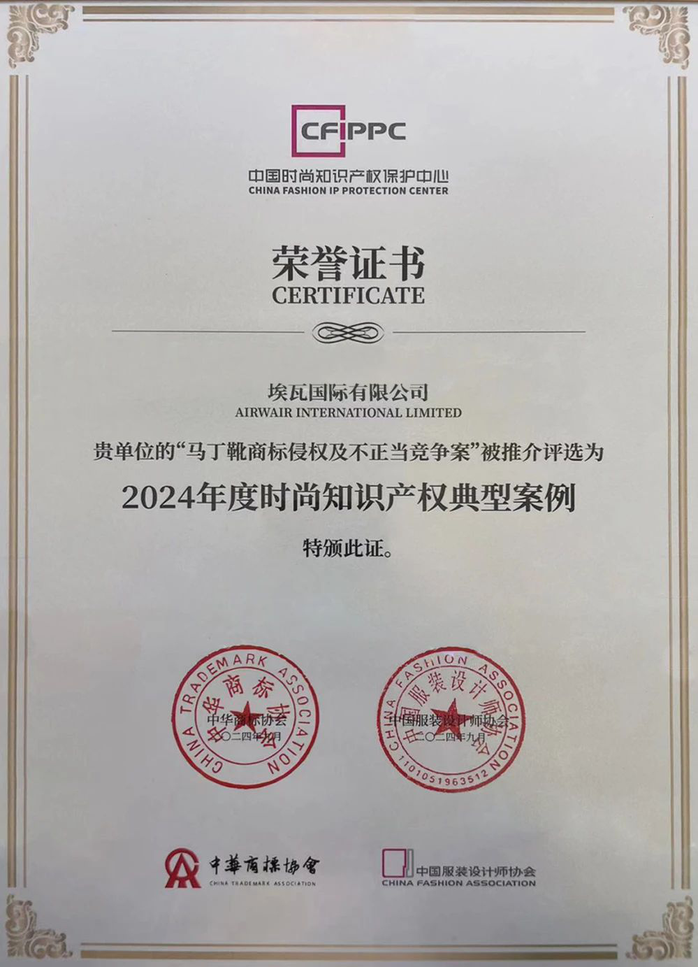 集佳代理埃瓦國際有限公司(AIRWAIR INTERNATIONAL LIMITED)的“馬丁靴商標(biāo)侵權(quán)及不正當(dāng)競爭案”榮登十大案例榜單。本案涉及與時尚品鞋履有關(guān)的商標(biāo)侵權(quán)及不正當(dāng)競爭行為的認(rèn)定問題。在商標(biāo)侵權(quán)行為的認(rèn)定中,商標(biāo)權(quán)人一方面積極舉證證明“馬丁靴”并非商品的通用名稱,另一方反駁被控侵權(quán)人證明“馬丁靴”已經(jīng)構(gòu)成商品通用名稱證據(jù)的可采性,在證明商標(biāo)有效性的前提下確定被控侵權(quán)行為的成立,該案對通用名稱的認(rèn)定具有示范意義。另外,本案還在如何判定廣告宣傳表述構(gòu)成虛假宣傳和商譽詆毀方面具有典型意義。