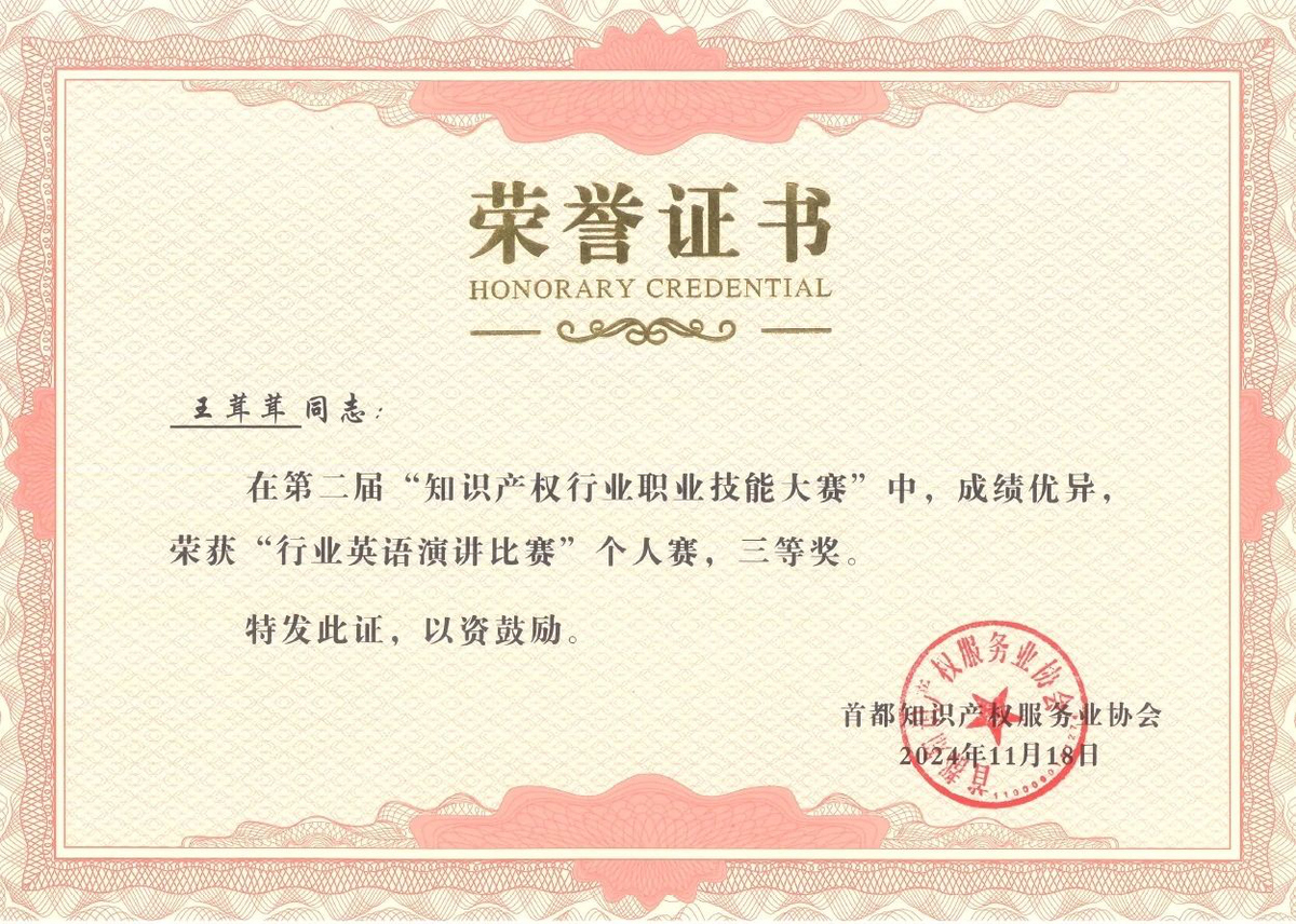 集佳十分重視知識(shí)產(chǎn)權(quán)人才的培養(yǎng),定期面向?qū)I(yè)人員開展形式多樣的業(yè)務(wù)培訓(xùn)。同時(shí),集佳也鼓勵(lì)廣大青年代理人積極參與各種專業(yè)比賽,通過專業(yè)技能展示、經(jīng)驗(yàn)分享、交流學(xué)習(xí),不斷提高對(duì)知識(shí)產(chǎn)權(quán)服務(wù)專業(yè)性的認(rèn)識(shí),提升專業(yè)服務(wù)本領(lǐng)和國際化服務(wù)水平。希望獲獎(jiǎng)選手們能在今后的工作學(xué)習(xí)中保持風(fēng)采,再創(chuàng)佳績,同時(shí)也希望更多的代理人加強(qiáng)相互學(xué)習(xí)與溝通交流,不斷提高專業(yè)能力,成為知識(shí)產(chǎn)權(quán)優(yōu)質(zhì)人才,共同為知識(shí)產(chǎn)權(quán)行業(yè)的發(fā)展貢獻(xiàn)力量。
