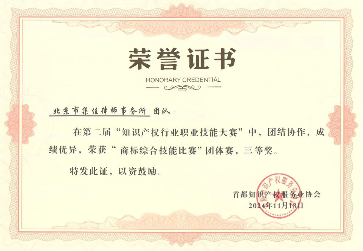 近日,在北京市知識(shí)產(chǎn)權(quán)局、海淀區(qū)市場(chǎng)監(jiān)督管理局(區(qū)知識(shí)產(chǎn)權(quán)局)的指導(dǎo)下,由首都知識(shí)產(chǎn)權(quán)服務(wù)業(yè)協(xié)會(huì)主辦,中國知識(shí)產(chǎn)權(quán)研究會(huì)專利專業(yè)委員會(huì)、北京(中關(guān)村)國際知識(shí)產(chǎn)權(quán)服務(wù)大廳承辦的第二屆“知識(shí)產(chǎn)權(quán)行業(yè)職業(yè)技能大賽”圓滿落幕,集佳多位代理人與商標(biāo)參賽團(tuán)隊(duì)在本屆大賽中斬獲多項(xiàng)佳績。在“行業(yè)英語演講比賽”個(gè)人賽中,何冉冉力戰(zhàn)群雄,拔得頭籌榮獲一等獎(jiǎng),王茸茸、王瑜榮獲三等獎(jiǎng);在商標(biāo)綜合技能比賽中,集佳參賽的兩支隊(duì)伍均取得優(yōu)異成績,由黎琳、趙敏敏、張雅靜三位組成的隊(duì)伍獲得二等獎(jiǎng),由李晴、伍君、曾珍三位組成的隊(duì)伍獲得三等獎(jiǎng)。