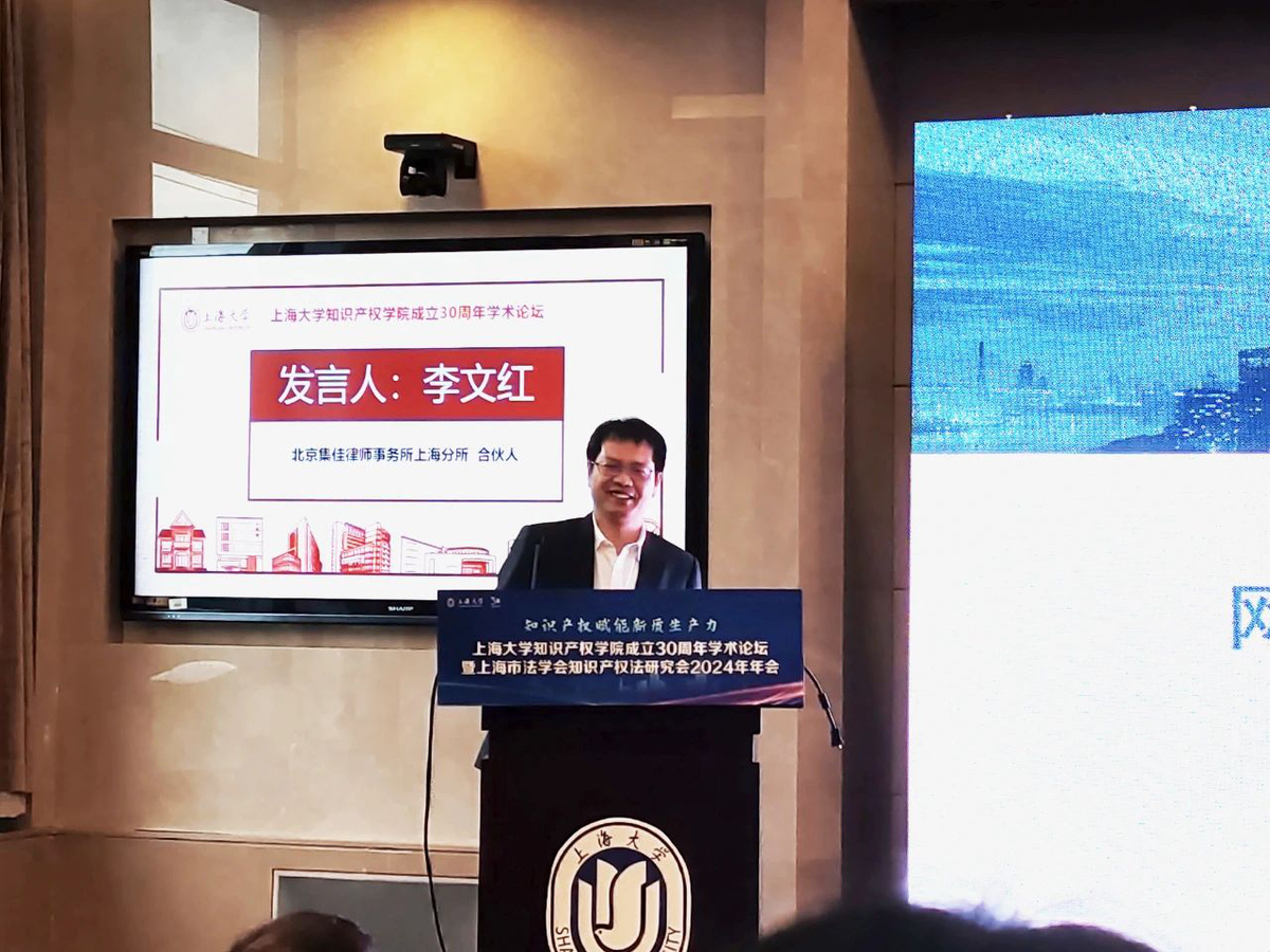 集佳律所上海分所主任、高級知識產(chǎn)權(quán)師李文紅博士應(yīng)邀出席大會,并在“釋放知識產(chǎn)權(quán)價值 賦能新質(zhì)生產(chǎn)力”分論壇上發(fā)表演講,與來自眾多高校的專家學(xué)者和業(yè)界代表共同就知識產(chǎn)權(quán)價值的釋放與賦能新質(zhì)生產(chǎn)力的路徑進行了深入探討。