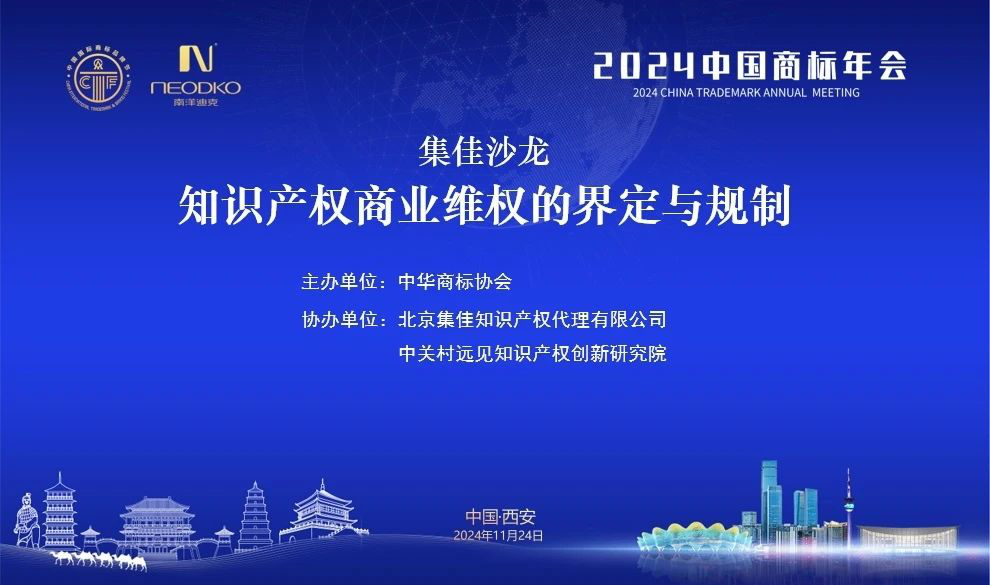 由中華商標(biāo)協(xié)會(huì)主辦,陜西省品牌建設(shè)促進(jìn)中心、中企商標(biāo)發(fā)展中心承辦,陜西南洋迪克家具制造有限公司總協(xié)辦的第十四屆中國(guó)國(guó)際商標(biāo)品牌節(jié)于2024年11月22日至25日在陜西省西安市盛大舉行。11月24日,由中華商標(biāo)協(xié)會(huì)主辦、北京集佳知識(shí)產(chǎn)權(quán)代理有限公司與中關(guān)村遠(yuǎn)見(jiàn)知識(shí)產(chǎn)權(quán)創(chuàng)新研究院協(xié)辦的“集佳沙龍——知識(shí)產(chǎn)權(quán)商業(yè)維權(quán)的界定與規(guī)制”主題活動(dòng)在西安國(guó)際會(huì)展中心成功舉辦。本屆沙龍力邀多位資深專家,圍繞知識(shí)產(chǎn)權(quán)商業(yè)維權(quán)的難點(diǎn)和熱點(diǎn)問(wèn)題,進(jìn)行了充分的探討和交流,吸引了來(lái)自國(guó)內(nèi)外企業(yè)、知識(shí)產(chǎn)權(quán)服務(wù)機(jī)構(gòu)以及相關(guān)協(xié)會(huì)組織的200余位代表前來(lái)參與。