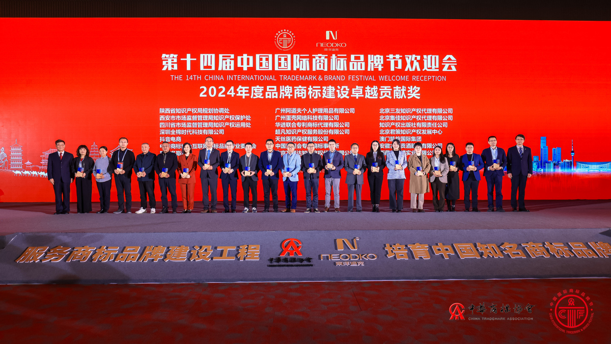 由中華商標(biāo)協(xié)會(huì)主辦,陜西省品牌建設(shè)促進(jìn)中心、中企商標(biāo)發(fā)展中心承辦,陜西南洋迪克家具制造有限公司總協(xié)辦的第十四屆中國(guó)國(guó)際商標(biāo)品牌節(jié)將于2024年11月22日至25日在陜西省西安市盛大舉行。11月22日晚,萬(wàn)眾矚目的商標(biāo)品牌節(jié)歡迎會(huì)暨頒獎(jiǎng)典禮在西安國(guó)際會(huì)展中心隆重舉行,來(lái)自政府部門、相關(guān)組織以及全國(guó)多家企業(yè)和知識(shí)產(chǎn)權(quán)機(jī)構(gòu)的1000余名代表共襄盛會(huì)。北京集佳知識(shí)產(chǎn)權(quán)代理有限公司憑借杰出的專業(yè)實(shí)力,以及長(zhǎng)期以來(lái)對(duì)商標(biāo)事業(yè)發(fā)展和行業(yè)建設(shè)所做出的卓越貢獻(xiàn),蟬聯(lián)2023年度“優(yōu)秀商標(biāo)代理機(jī)構(gòu)”與2024年度“品牌商標(biāo)建設(shè)卓越貢獻(xiàn)獎(jiǎng)”殊榮,并榮登“2024商標(biāo)代理服務(wù)能力數(shù)據(jù)統(tǒng)計(jì)600”之5A級(jí)機(jī)構(gòu)榜單。