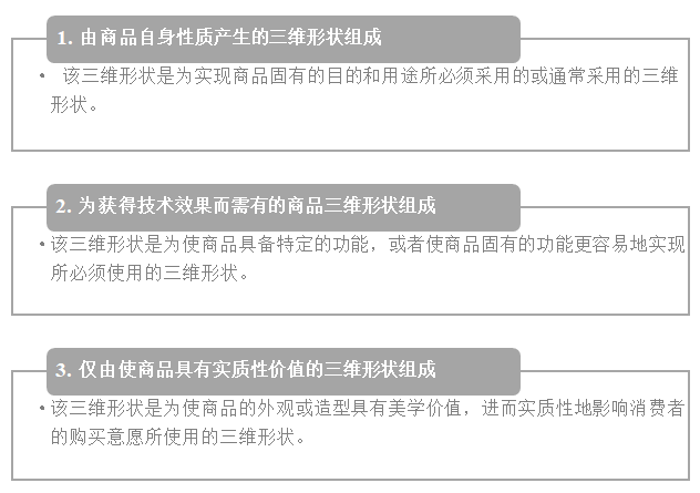 學(xué)理上的分類對于判斷三維標志的功能性有所參考價值,但在現(xiàn)實考慮中仍需側(cè)重于理解《商標法》及《商標審查審理指南》相關(guān)具體規(guī)定。