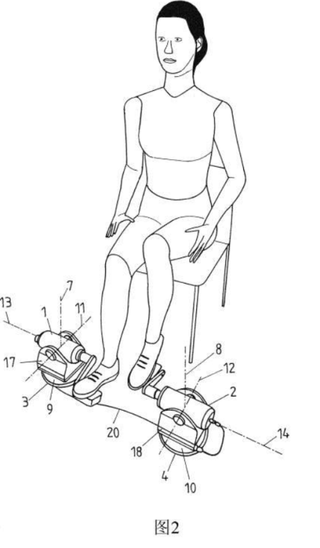 再者,對比文件3中完全沒有公開左右兩個曲柄軸42能夠單獨地通過中間元件來調(diào)節(jié)。對比文件3沒有公開各個曲柄軸對于待訓(xùn)練的患者的相應(yīng)的生理需求的單獨的可調(diào)節(jié)性。相反,對比文件3公開了用于患者的左腳和右腳的左右兩個曲柄軸的共同的調(diào)節(jié)方案。因此,對比文件3中沒有公開修改后的權(quán)利要求1中的“第一運動元件(1)設(shè)置在第一基礎(chǔ)元件(3)上,并且第二運動元件(2)設(shè)置在第二基礎(chǔ)元件(4)上,其中所述第一基礎(chǔ)元件(3)和所述第二基礎(chǔ)元件(4)在機械上完全彼此分開”。