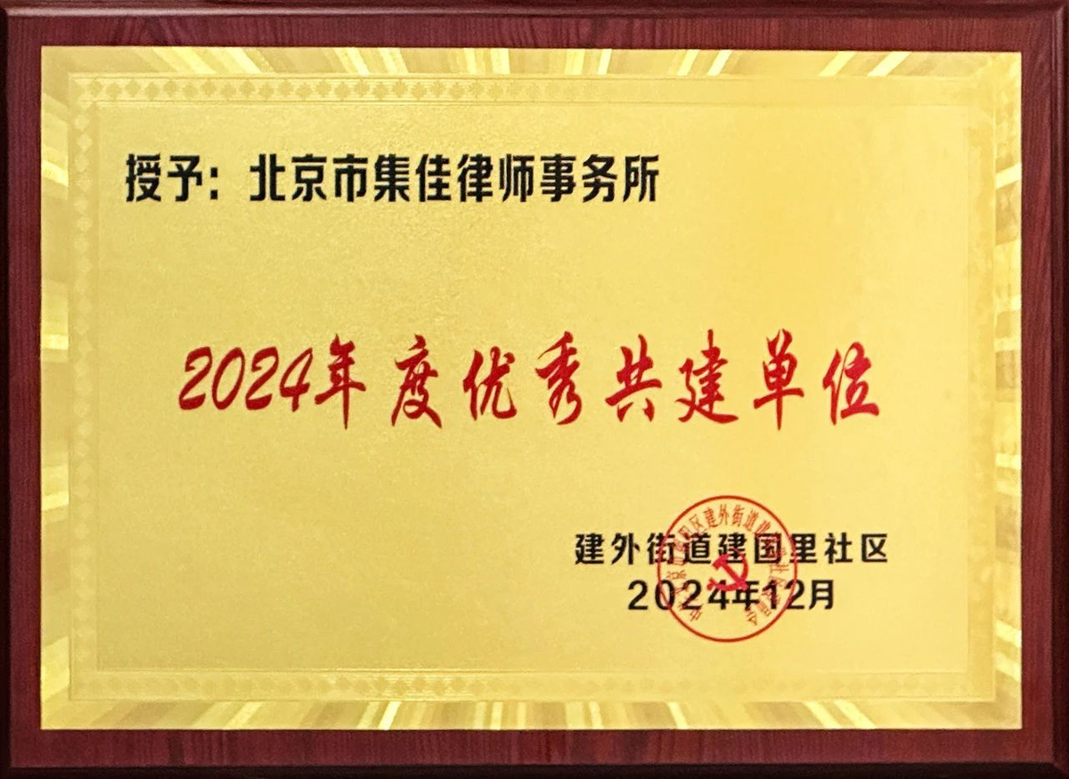 近日,建外街道建國里社區(qū)召開“建國里社區(qū)優(yōu)秀共建單位表彰大會”,對2024年社區(qū)黨建工作進行總結(jié),并向各共建單位在支持社區(qū)建設、服務社區(qū)居民等方面所作出的積極貢獻表示感謝。北京集佳知識產(chǎn)權(quán)代理有限公司和北京市集佳律師事務所被授予“2024年度優(yōu)秀共建單位”榮譽稱號,這是對集佳積極參與社區(qū)共建工作的充分認可。