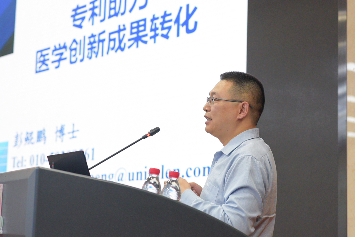 彭鯤鵬博士憑借其深厚的專業(yè)知識和豐富的實踐經(jīng)驗,在講座中發(fā)表了精彩的主題演講。演講圍繞 “專利助力醫(yī)學創(chuàng)新成果轉(zhuǎn)化” 展開,彭鯤鵬博士深入剖析了國外醫(yī)學創(chuàng)新成果轉(zhuǎn)化的成功經(jīng)驗,如經(jīng)皮冠脈介入術(shù)、球囊擴張支架等技術(shù)的創(chuàng)新歷程,以及腫瘤免疫治療領域的成果轉(zhuǎn)化模式,讓參會人員深刻認識到專利在醫(yī)學創(chuàng)新成果轉(zhuǎn)化中的關(guān)鍵作用。