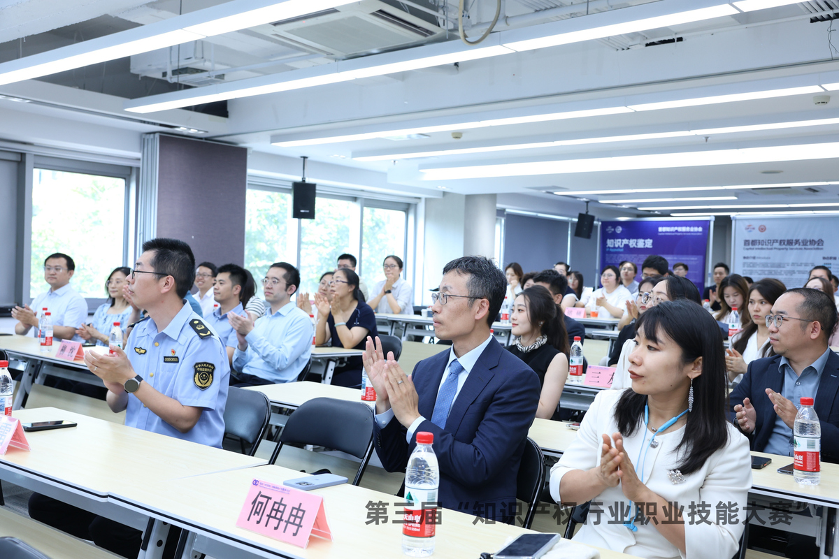 中國(guó)知識(shí)產(chǎn)權(quán)研究會(huì)副理事長(zhǎng)甘紹寧,北京市知識(shí)產(chǎn)權(quán)局二級(jí)巡視員黃建軍,海淀區(qū)市場(chǎng)監(jiān)督管理局副局長(zhǎng)、區(qū)知識(shí)產(chǎn)權(quán)局局長(zhǎng)張芳英,中國(guó)知識(shí)產(chǎn)權(quán)研究會(huì)綜合部部長(zhǎng)張健佳,首都知識(shí)產(chǎn)權(quán)服務(wù)業(yè)協(xié)會(huì)會(huì)長(zhǎng)白剛,榮譽(yù)會(huì)長(zhǎng)李強(qiáng)出席頒獎(jiǎng)典禮,為獲獎(jiǎng)選手頒發(fā)榮譽(yù)證書(shū)和獎(jiǎng)杯。