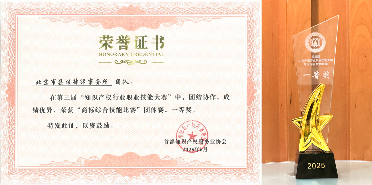 近日,由北京市知識(shí)產(chǎn)權(quán)局、海淀區(qū)市場(chǎng)監(jiān)督管理局指導(dǎo),首都知識(shí)產(chǎn)權(quán)服務(wù)業(yè)協(xié)會(huì)主辦的第三屆“知識(shí)產(chǎn)權(quán)行業(yè)職業(yè)技能大賽”圓滿落幕。集佳代表隊(duì)在比賽中展現(xiàn)了深厚的專業(yè)素養(yǎng),斬獲多項(xiàng)殊榮:由王斯沄、郝博文、王嬌嬌組成的商標(biāo)團(tuán)隊(duì)在商標(biāo)綜合技能比賽中力戰(zhàn)群雄,榮獲一等獎(jiǎng);青年代理人徐欣在行業(yè)英語(yǔ)演講比賽中表現(xiàn)優(yōu)異,榮獲二等獎(jiǎng)!