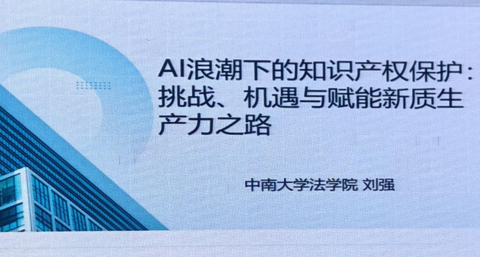 在專家培訓(xùn)環(huán)節(jié),中南大學(xué)法學(xué)院劉強教授帶來了一場精彩紛呈的專題分享。他以“AI浪潮下的知識產(chǎn)權(quán)保護:挑戰(zhàn)、機遇與賦能新質(zhì)生產(chǎn)力之路”為題,深入剖析人工智能時代知識產(chǎn)權(quán)保護面臨的新課題,為與會者開拓了新視野,啟迪了新思路。
