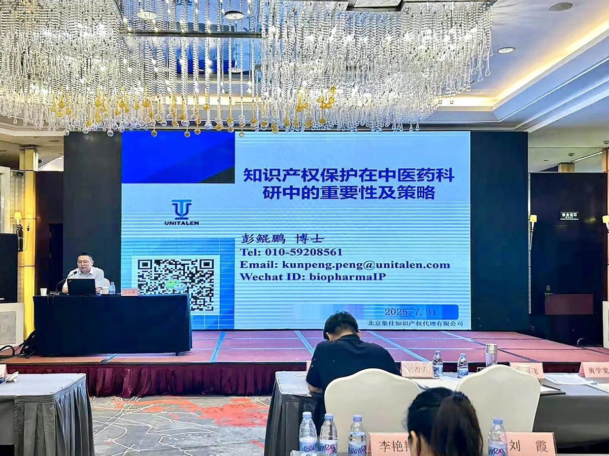 2025年7月31日,重慶市衛(wèi)生健康委員會(huì)主辦的 “2025年全市中醫(yī)藥科技創(chuàng)新能力提升培訓(xùn)班” 在重慶歐瑞大酒店舉行。集佳合伙人彭鯤鵬博士受邀主講 “知識(shí)產(chǎn)權(quán)保護(hù)在中醫(yī)藥科研中的重要性及策略”,為全市二級(jí)以上公立中醫(yī)醫(yī)療機(jī)構(gòu)分管領(lǐng)導(dǎo)、科研負(fù)責(zé)人及巴渝岐黃學(xué)者等帶來(lái)專業(yè)解讀,助力中醫(yī)藥科研成果轉(zhuǎn)化與權(quán)益保護(hù)。