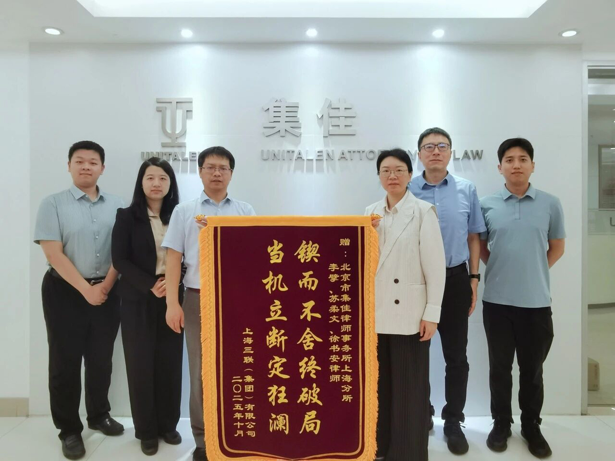 近日,集佳上海分所代理的上海三聯(lián)(集團(tuán))有限公司(以下簡稱“上海三聯(lián)集團(tuán)”)與上海某公司、大豐某公司等侵害商標(biāo)權(quán)及不正當(dāng)競爭糾紛案的執(zhí)行取得重大進(jìn)展,上海三聯(lián)集團(tuán)代表專程蒞臨集佳上海分所,送來表揚(yáng)錦旗。